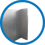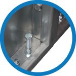 Угловой элемент выполнен из цельного листа, что повышает прочность конструкции в углах. Жесткость панелей обеспечивается уникальным двойным загибом, без применения сварки, что повышает коррозионную стойкость конструкции в несколько раз.